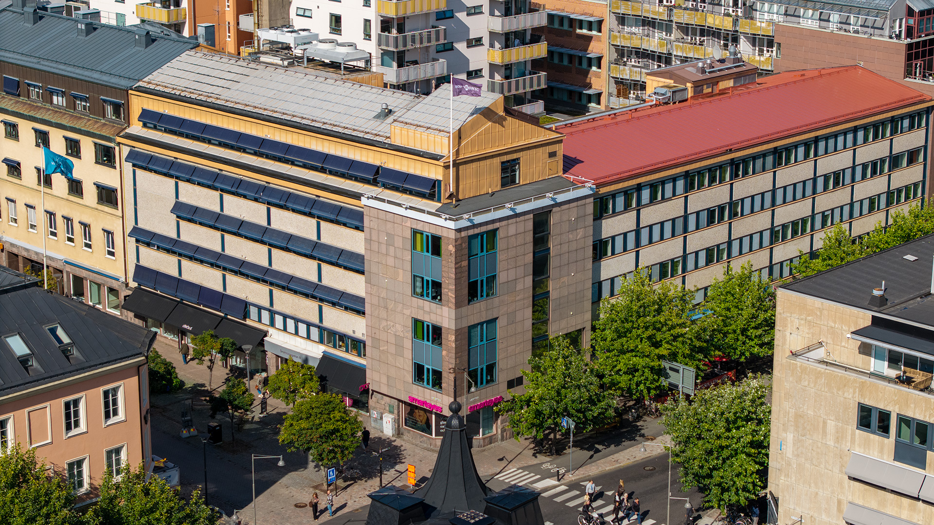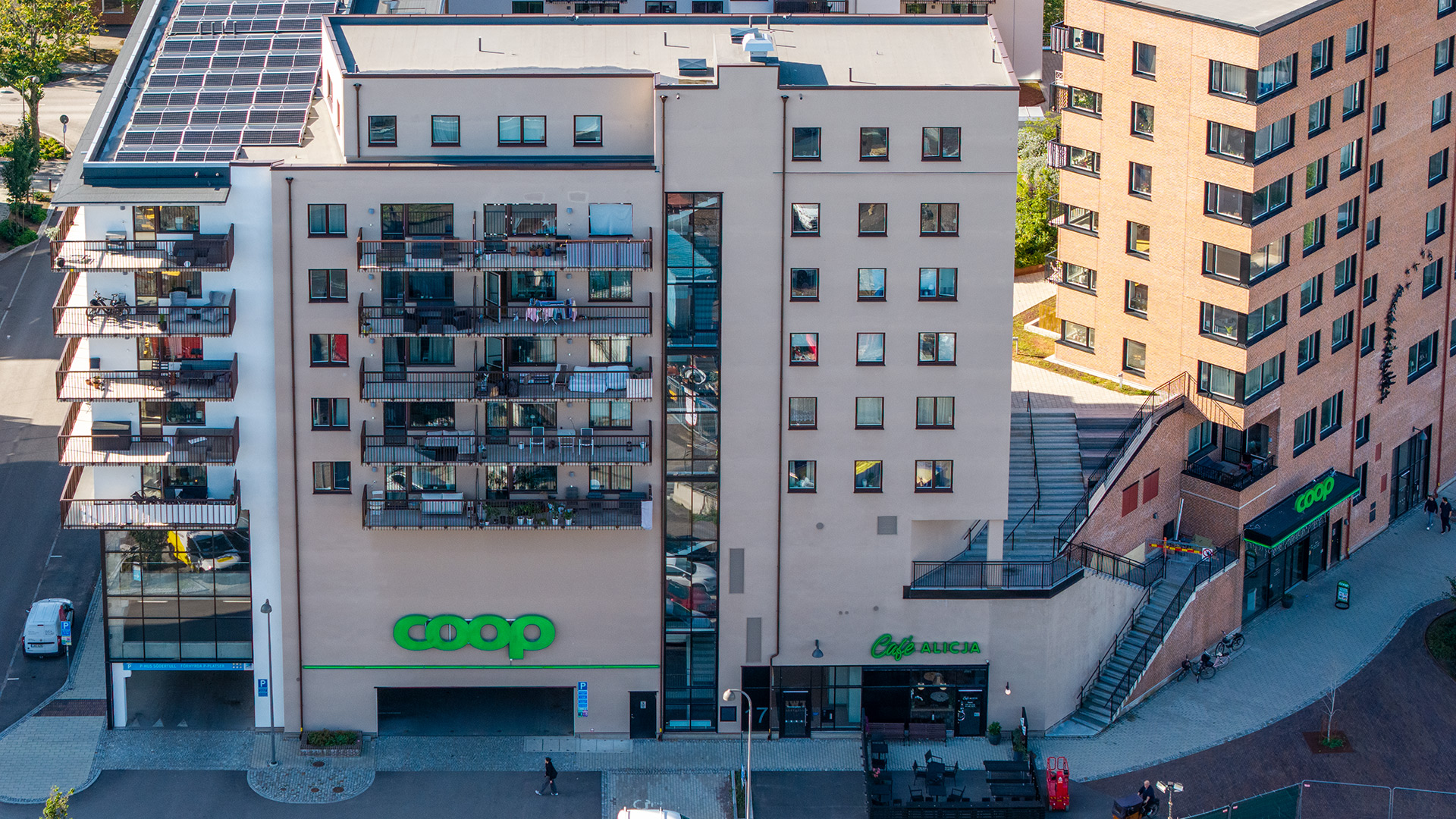 Drönarfoto över fastigheten Freja 14 i Karlstad